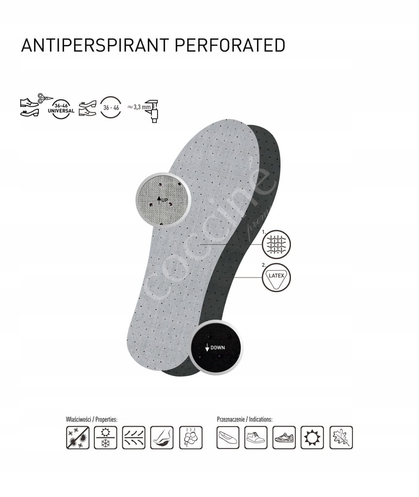 - Typ: Wkładki do butów, antypotowe, perforowane